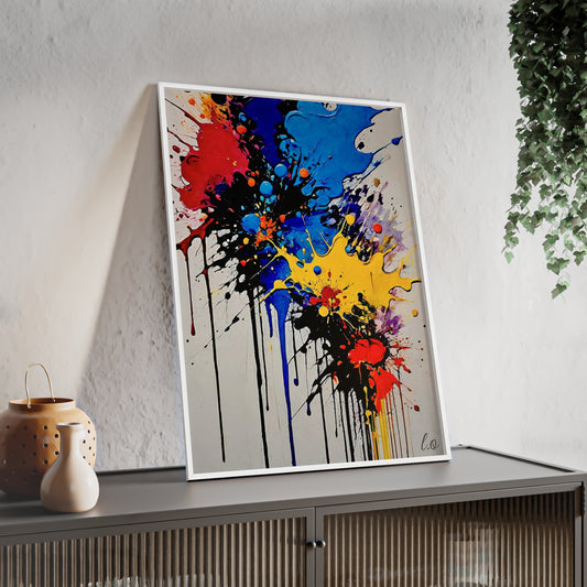 Affiche Murale Abstraite Colorée avec Cadre en Bois - Décoration Moderne et Élégante
